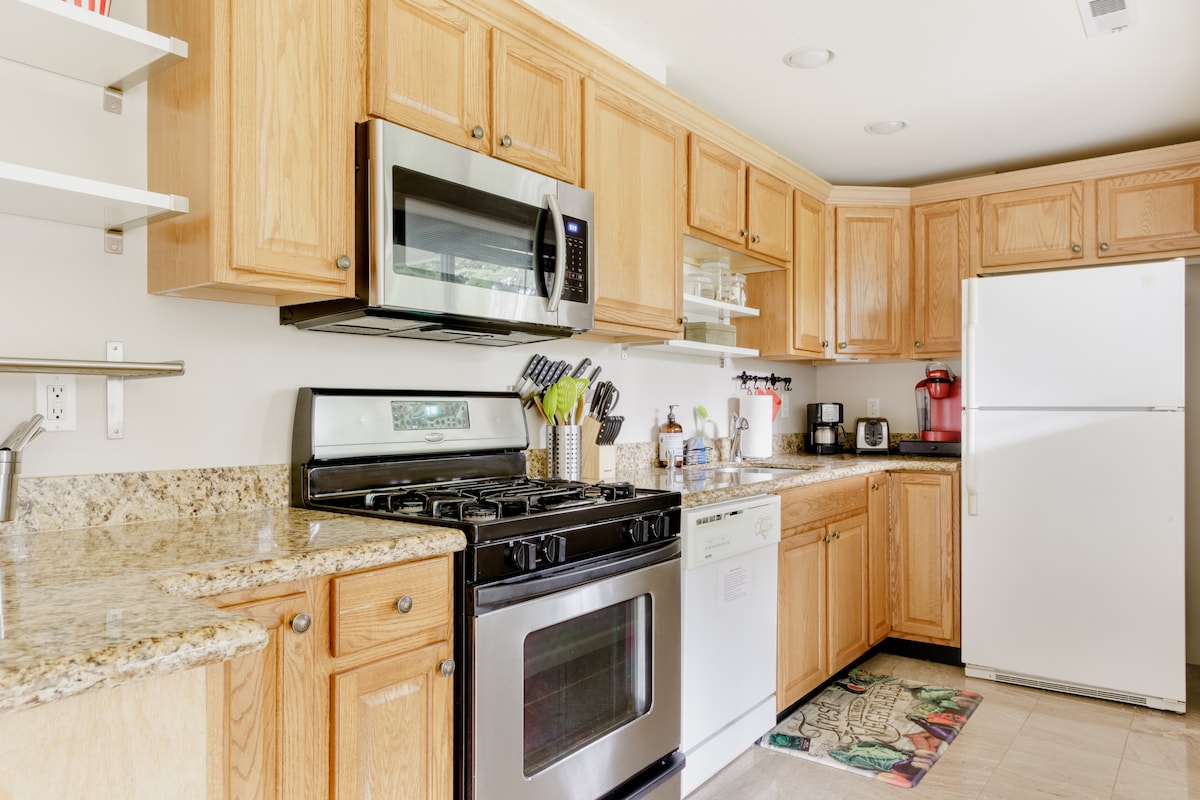 Dobrze wyposażony pensjonat o powierzchni 750 stóp kwadratowych. Przestronna kuchnia-jadalnia-salon. Oddzielna sypialnia. Pomieszczenie gospodarcze z pełnowymiarową pralką i suszarką. Pełna kuchnia dla smakoszy: urządzenia ze stali nierdzewnej. Granitowe blaty. Sypialnia z pełną szafą, komodą, łóżkiem typu queen. Dużo wysokiej jakości pościeli. Pełna łazienka, bardzo głęboka wanna. Ogrzewanie i klimatyzacja. Telewizor HD ze standardowym kablem. Szybkie Wi-Fi. Bezpieczne prywatne wejście. Zakaz przebywania zwierząt i palaczy.