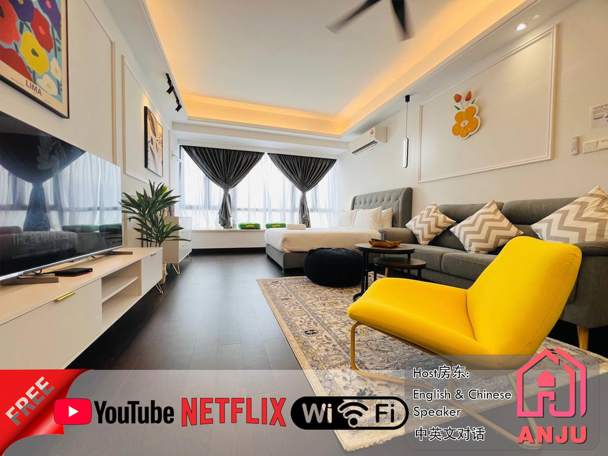 Witamy w naszym przytulnym, kremowym stylu 2 łóżka 2 łazienki🤍 Nasza lokalizacja znajduje się w samym sercu miasta Johor Bahru, zaledwie 10 minut spacerem od zadaszonego mostu łączącego CIQ, JB sentral, City Square i Komtar🚶🏻. Jest to bardzo odpowiednie miejsce na spotkanie rodzinne, grupę przyjaciół, podróżujących służbowo lub turystów.🌹 🌃 Z balkonu naszego apartamentu roztacza się niesamowity widok na miasto. Centrum handlowe R&F znajduje się naprzeciwko, w odległości spaceru, a Jaya Grocer, pralnia, 7-11, restauracje i sklepy spożywcze znajdują się na parterze.🌻 Przyjdź i ciesz się