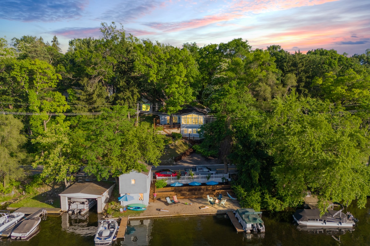 Ten domek nad jeziorem znajduje się na akrach z 150 stopami prywatnej plaży na podwórku. Dostępnych jest 5 łazienek i 5 łóżek; 3 to pokoje z łazienkami z nowymi apartamentami z łóżkiem typu KING-SIZE i czwartą dla dzieci z łóżkami piętrowymi. Wiele do zrobienia - od 75-calowego telewizora z Netflix/prime i szybkim internetem po prywatne tarasy na świeżym powietrzu, hamaki, grill, JACUZZI i palenisko oraz stół do gier. Wznoszące się 30-stopowe sufity i widoki na zachód słońca w każdym oknie zobaczysz, dlaczego jest to najlepszy domek w okolicy Camlache Lambton Shores!