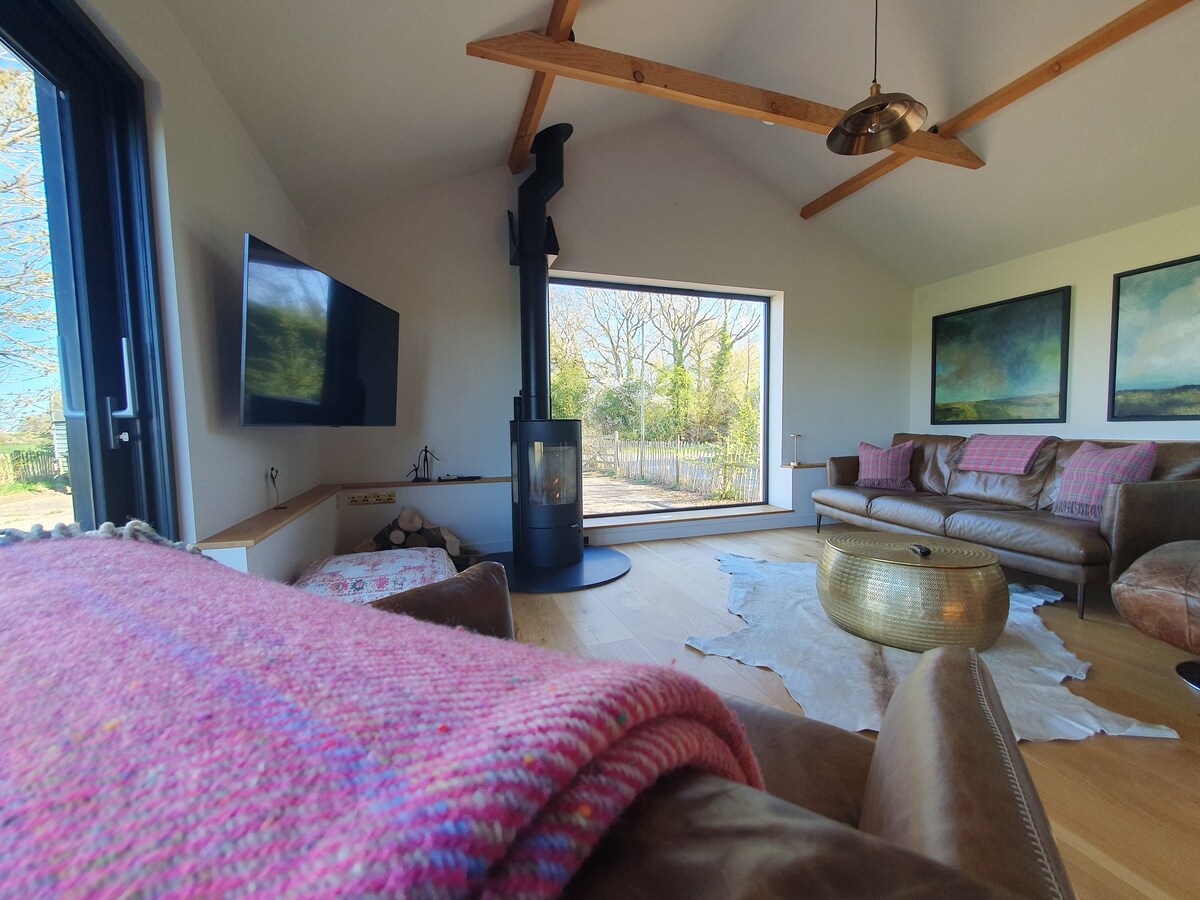 The Barn sleeps up to 7 people, with views over the countryside, a large garden and outdoor bluetooth enabled hot tub, new in August 2021. It's a 'get away from it all' place. Visit Framlingham, Norwich, Cambridge, Thetford Forest, Southwold, Aldeburgh and more. There are traditional English pubs all around us serving Suffolk ales, great food and takeaways. Family and dog friendly, wheelchair accessible and suitable for business travellers. Superhosts! EV charger at nearby garage.