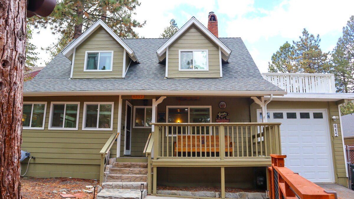 W tym domu znajdziesz wszystko, czego potrzebujesz dla 1, 2 lub 3 rodzin, aby spędzić razem czas lub na relaksujący wypad. Ginormalna przestrzeń mieszkalna z 20-stopowymi sufitami i 4 wentylowanymi świetlikami, widokiem na jezioro, stołem bilardowym, 2 dużymi inteligentnymi telewizorami i wielkim kominkiem. Górny taras ma duży stół, grill i wygodne miejsca do siedzenia. 2 połączone lofty z piłkarzykami, salonem gier i mnóstwem gier. Dodaj miejsce na piłkę, aby ten dom stał się spełnieniem marzeń dziecka. Szybka przejażdżka do Sky Park lub Snow Valley. Big Bear jest tylko 45 minut drogi stąd.