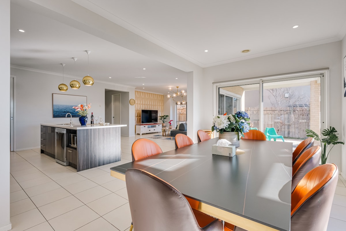 Lovely 6BR house at the heart of Saltwater in Point cook where has got all of you need to relax and peace. This house is perfect for families and groups and kids. This house is ready for you and your family. Sanctuary Lakes Shopping Centre got supermarket and cafe within 4 mins drive. there are fantastic places close by, Such as 22 Hectares Salt Water Reserve, Sanctuary Lakes Golf Club, Werribee Open Range Zoo, Werribee Park Golf Club and Victoria State Rose Garden ect.