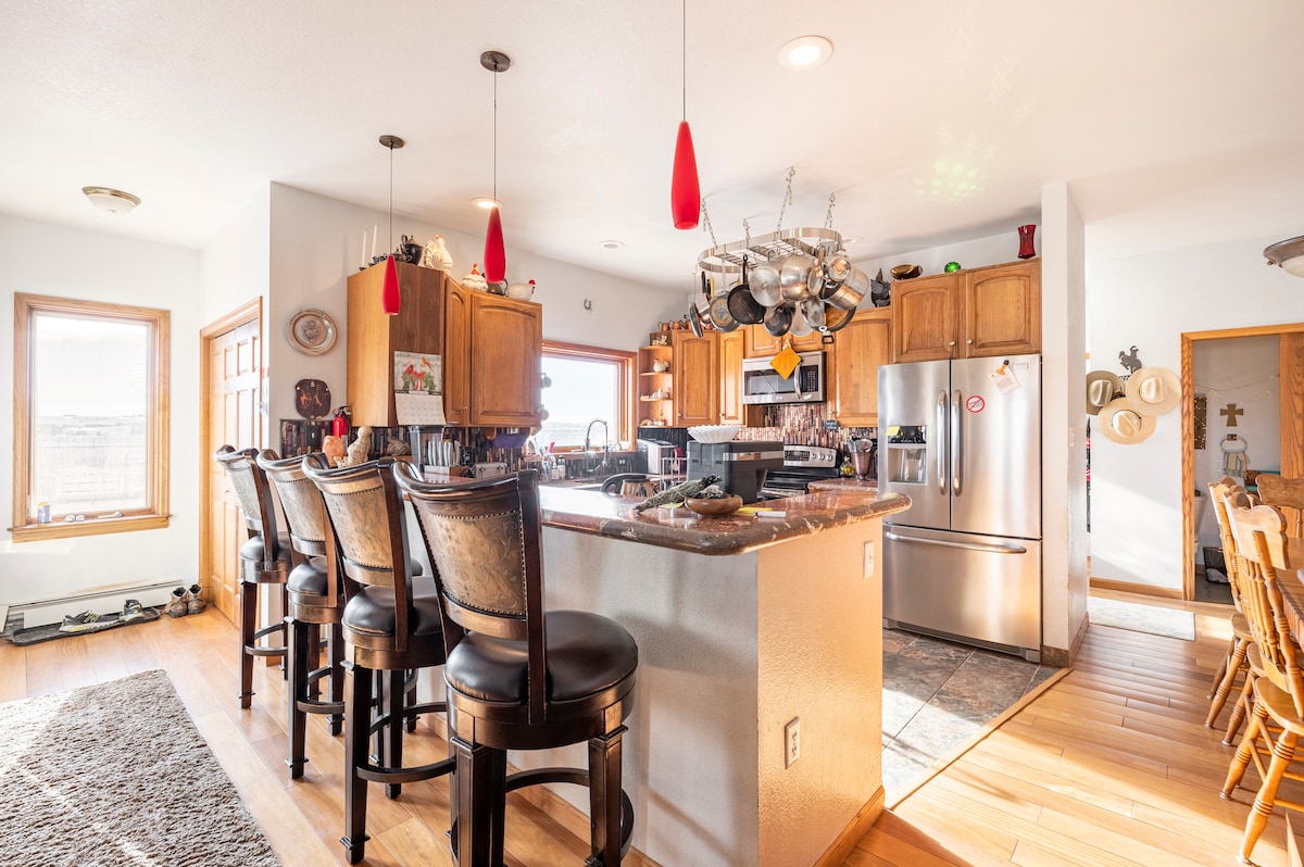🐾 Przytulny dom w stylu western! 1 łóżko typu queen, urokliwy kompostownik, dołączona wychodek/przenośna toaleta, kuchnia na świeżym powietrzu🍳, gorący prysznic na świeżym powietrzu 🚿! ✨ Rzadkość! 2 zwierzęta mogą przebywać bezpłatnie (więcej po uzyskaniu zgody, 10 USD za każde) 2 mile od I-25, 10 minut do miasta, sklepy/restauracje Ponad 20% zniżki na dłuższe pobyty! Dostęp do❓ domu gościnnego *zwykle dostępny* Miejsce spotkań z 🛁 kąpielą, 🚻 toaletą i kuchnią. Jeśli to może być powód do rezygnacji, zapytaj o to w wiadomości. Gry, ogniska, konie, kurczaki i pszczoły. Nieutwardzone drogi i tajemniczy labirynt do odkrycia!