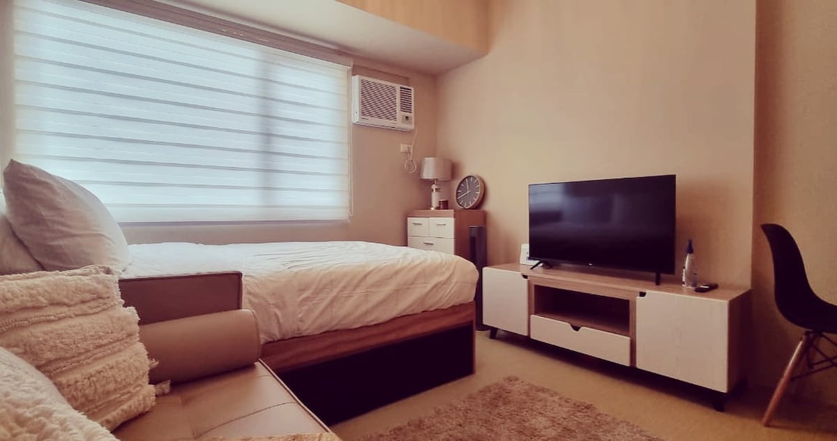 Dobrze utrzymane studio (dla 3 osób) w sercu miasta w pobliżu centrum handlowego Ayala Centrio. Na 4 piętrze z łóżkiem typu KING size oraz rozkładaną sofą. Wyposażony w szybkie Wi-Fi (200 mbps) Globe Parafiber, Smart TV i Netflix. Pełna łazienka z bidetem, ręcznikami hotelowej jakości, żelem pod prysznic i szamponem. W pełni wyposażona kuchnia z kompletnymi naczyniami i BEZPŁATNYM galonem wody pitnej. Z widokiem na super ładny basen (basen dla dorosłych i dla dzieci). W pobliżu znajdują się sklepy spożywcze, pralnie, całodobowy sklep spożywczy i bary. Zarezerwuj teraz🎖️