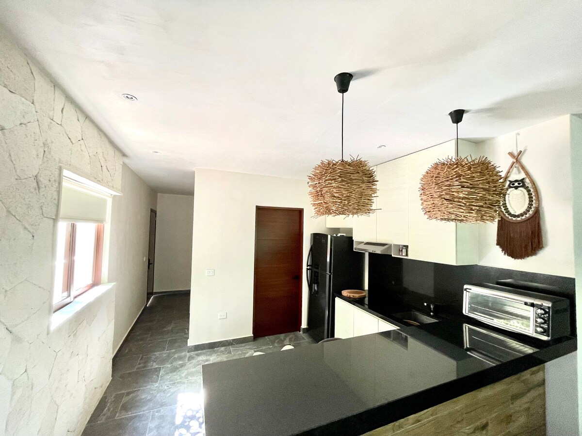 Witamy w Departamento Mora, miejscu położonym na Riwierze Maya, gdzie będziesz 8 minut drogi od Xcaret Park, Xplor, Xenses i Hotel Xcaret. 12 minut od plaży i słynnej 5 alei. Możesz wejść windą lub schodami, w mieszkaniu znajdują się dwie kabiny bezpieczeństwa, do których dajemy Ci metkę z dostępem, dzięki czemu możesz przyjeżdżać i wyjeżdżać ze swojego pojazdu Ciesz się pięknym projektem rękodzieła, który dla Ciebie tworzymy.