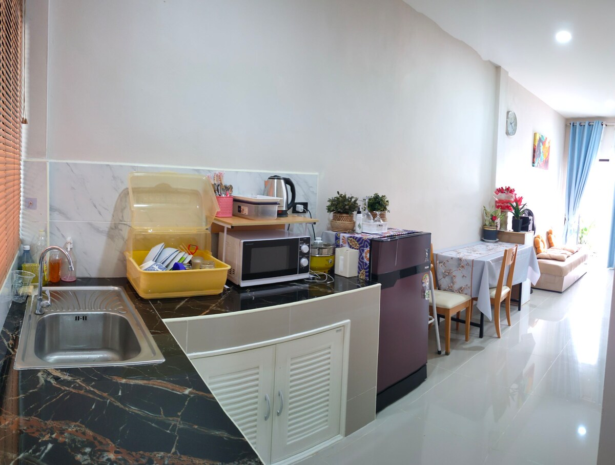 Przyjedź z całą rodziną do tego wspaniałego miejsca z dużą ilością miejsca na zabawę. Przestronny dom z 3 sypialniami z 1 w pełni umeblowaną sypialnią (klimatyzacja + łóżko), 2 dodatkowymi pustymi pokojami, 2 czystymi łazienkami i kuchnią w stylu tajskim. Świetne dla rodzin lub na dłuższe pobyty. W pobliżu Big C, Robinson i Saint Joseph School. Cicha okolica. Garaż mieści 2 samochody. Uwaga: sąsiad ma psa, który czasami może szczekać.