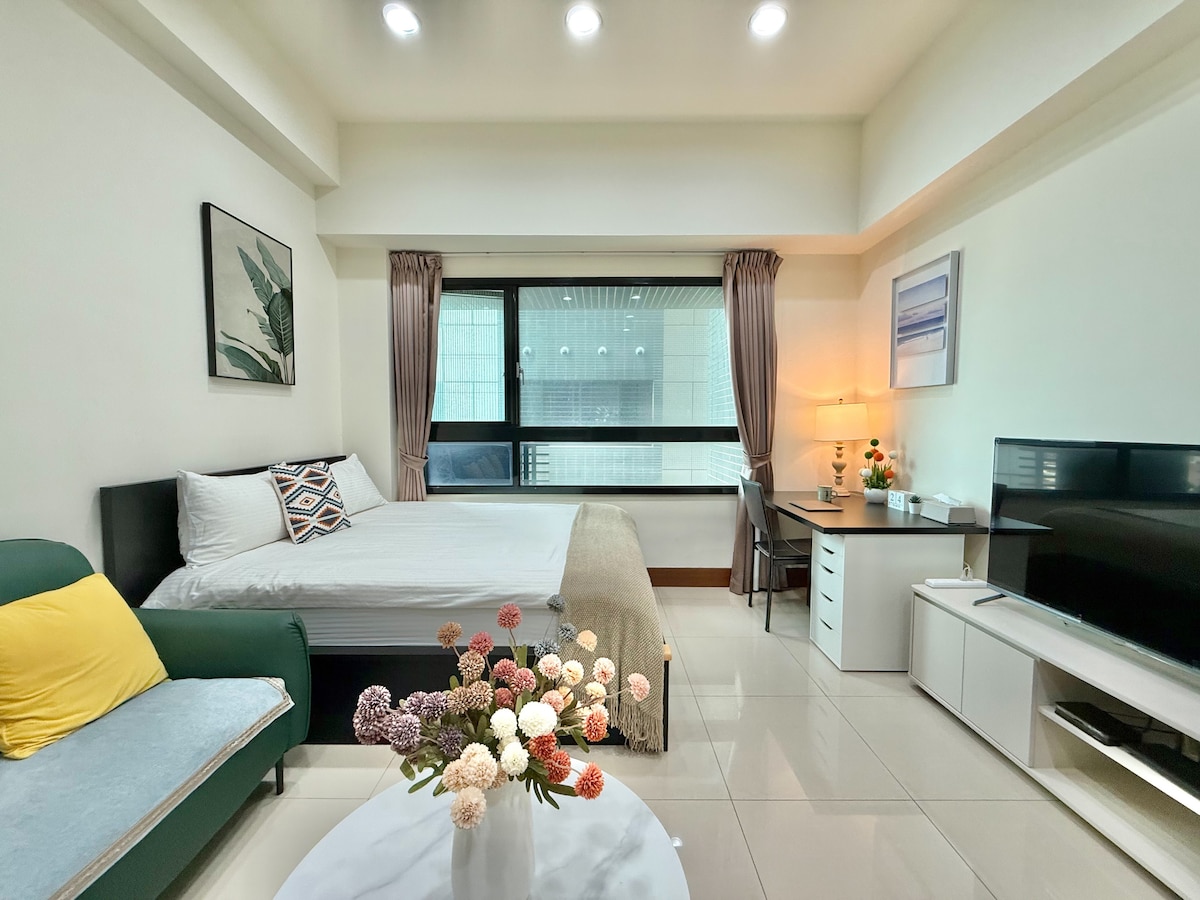 3 minuty do stacji metra Xinpu Dogodna lokalizacja dla podróżujących do Ximending, świątyni Longshan, dworca kolejowego w Tajpej i Taipei 101 Wszystko, czego potrzebujesz do życia, jest w zasięgu ręki: 7-11, Starbucks, sklepy z kosmetykami, słynna ulica brunchowa w Banqiao, sklepy odzieżowe, tradycyjne targowiska, tajwańskie napoje koktajlowe i wiele więcej. Idealne miejsce na pobyt dla przyjaciół i rodzin Długoterminowe zniżki na długoterminowe pobyty