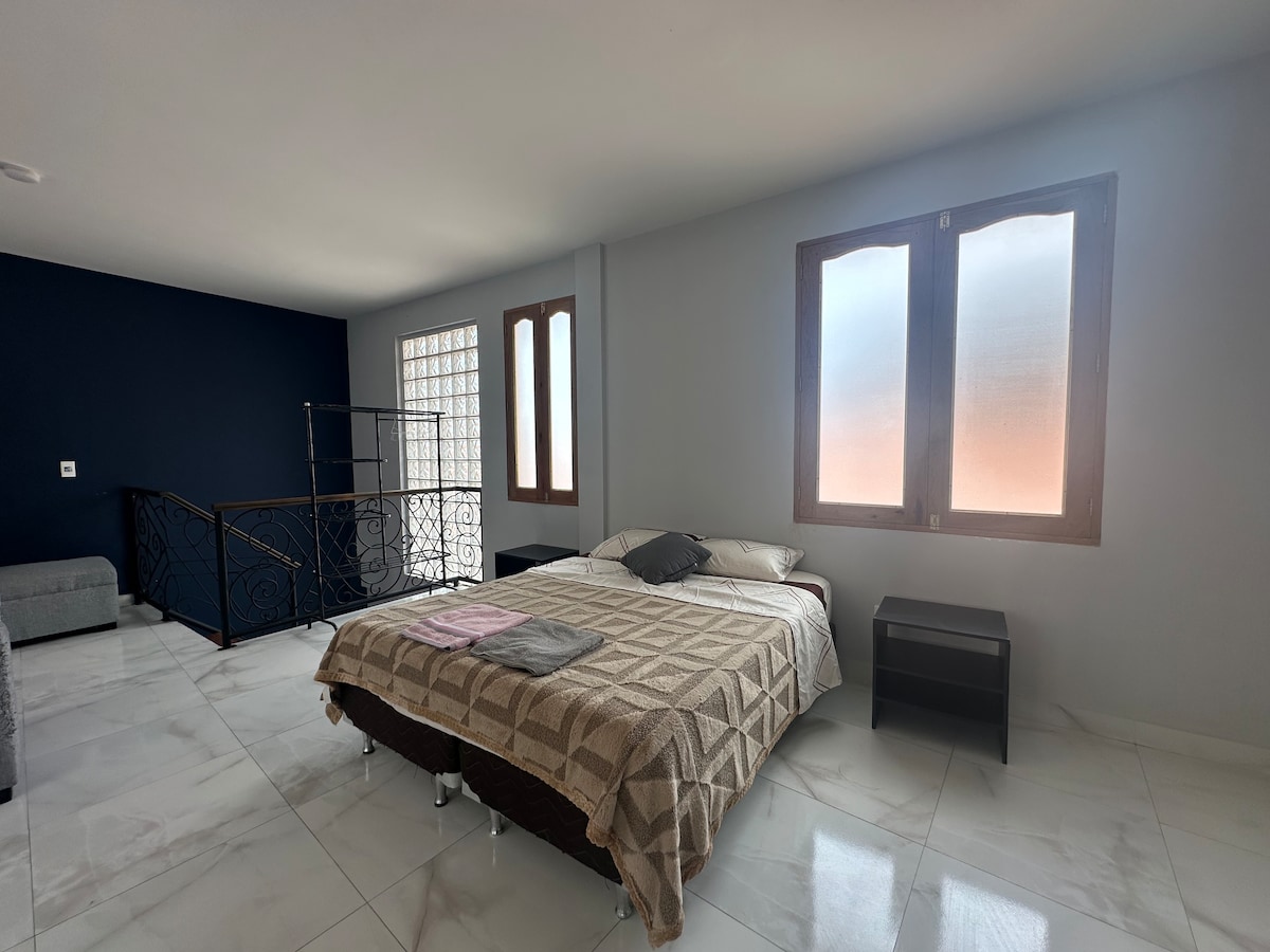 Odkryj serce Sucre z tego przytulnego apartamentu w odnowionym domu kolonialnym, zaledwie półtorej przecznicy od Central Plaza i Casa de la Libertad. Idealne dla par, oferuje wygodną sypialnię, wyposażoną kuchnię i przytulną jadalnię. Dzięki Wi-Fi, ciepłej wodzie i dostępowi do wspólnego patio będziesz cieszyć się spokojem w samym centrum miasta. Ciesz się przestrzenią zaprojektowaną w minimalistycznym i przytulnym stylu, w delikatnych kolorach, które tworzą spokojną i przyjemną atmosferę.