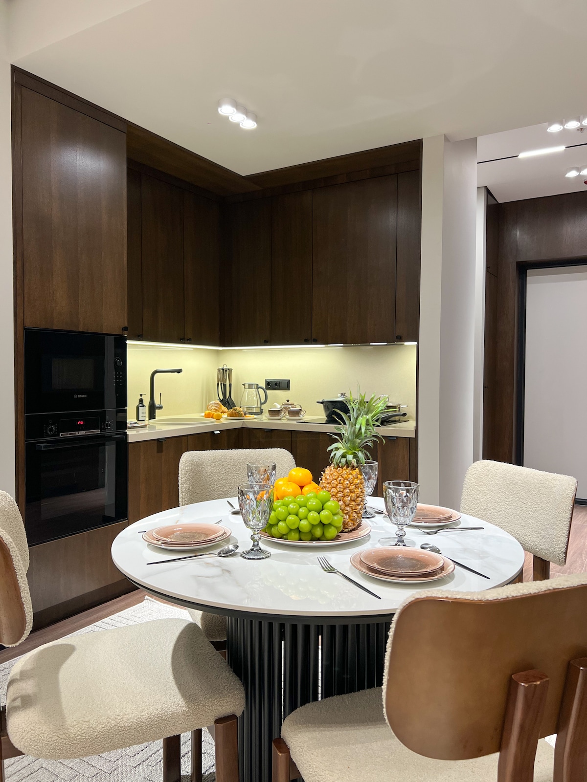 Окунитесь в атмосферу дизайнерских апартаментов премиум-класса в сердце Ташкента. Гостиная с диваном bouclé, стильной мебелью и журнальными столами из мрамора создаёт ощущение отеля 5. В квартире две спальни: мастер-спальня с большой кроватью, и вторая спальня с двумя отдельными кроватями — идеальна для семьи, друзей или коллег. Гардеробная с подсветкой, полностью оборудованная кухня, ванная в стиле boutique hotel. Идеально для гостей, которые ценят комфорт, эстетику и высокий уровень сервиса.