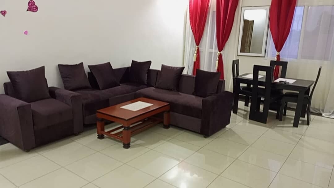 Wygodny umeblowany apartament, kilka minut drogi od lotniska Youndé. Bezpieczne i ciche, przyjazne i proste warunki na pobyty w Kamerunie. 2 sypialnie, salon, wyposażona kuchnia, doche z ciepłą wodą, bezpłatny parking.