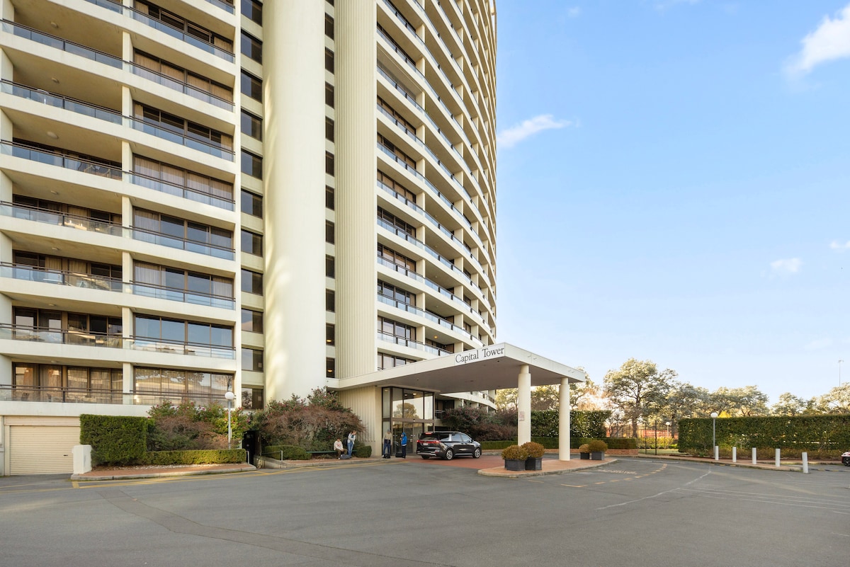 Wytworna rezydencja z 3 sypialniami z widokiem na spokojne ogrody i basen w Capital Tower. W każdej sypialni jest klimatyzacja, duży telewizor Smart TV, a w salonie czeka na Ciebie soundbar premium, dzięki któremu poczujesz się jak w kinie. W tym miejscu, gdzie podłogi są pokryte gumą do żucia, znajdziesz słoneczny balkon i spokojną atmosferę. Goście mogą korzystać z podgrzewanego basenu, siłowni, sauny, kortów tenisowych i boisk do squasha. Warto wybrać się nad jezioro Burley Griffin, do restauracji i galerii NewActon, które oferują najlepsze atrakcje kulturalne i kulinarne.