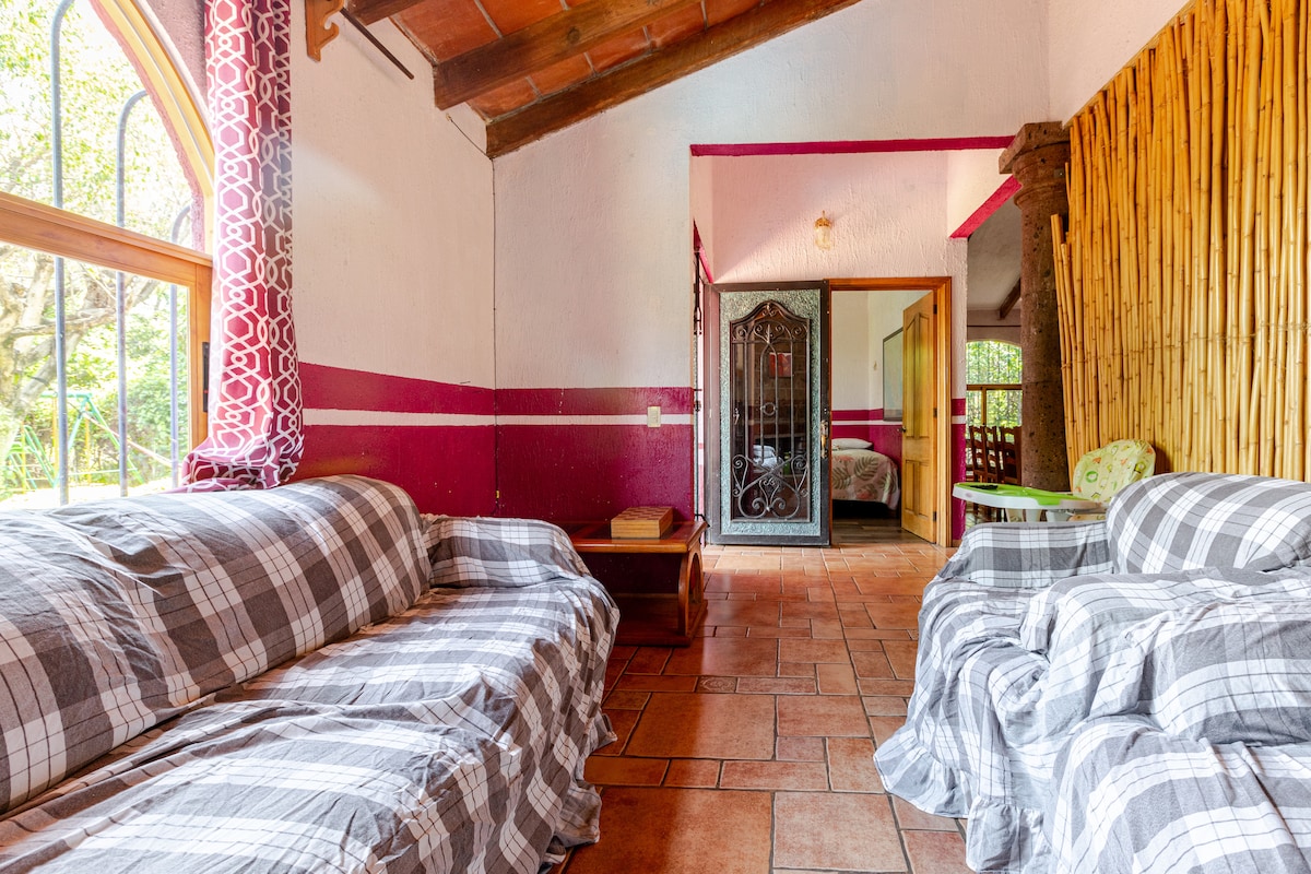 Zaledwie kilka minut jazdy samochodem od stolicy Meksyku, odkryj urok Tlayacapan, Morelos, malowniczego miasta uznanego za „Pueblo Magico” ze względu na jego bogactwo kulturowe i naturalne piękno. Niezależnie od tego, czy jest to weekendowy wypad, czy dłuższy pobyt, będziesz cieszyć się przyjemną pogodą, zapierającymi dech w piersiach widokami na pasmo górskie Tepozteco. Idealne miejsce, które łączy spokój z zabawą i przygodą. „Los Faroles” i „La Concha” znajdują się w odległości 1,5 km. Hurricane Harbor (Six Flags) 20 minut