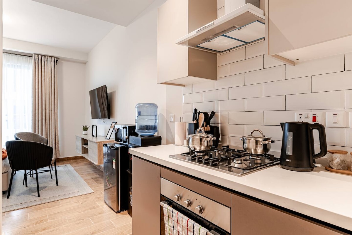 Wejdź do przytulnego apartamentu z 2 sypialniami, idealnego dla rodzin, par lub osób podróżujących służbowo. W ofercie znajdziesz miękkie łóżka, pościel premium i dużo miejsca do przechowywania, dzięki czemu pobyt będzie relaksujący i bezproblemowy. Wypij kenijską kawę na prywatnym balkonie, zrelaksuj się z Netflixem po dniu spędzonym na zewnątrz lub pozostań produktywny dzięki szybkiemu Wi-Fi i w pełni wyposażonej siłowni. Położony w tętniącym życiem Kilimani, zaledwie kilka minut od Yaya Centre, najlepszych restauracji i atrakcji miasta. Niezależnie od tego, czy odkrywasz, czy odpoczywasz, ta przestrzeń oferuje idealne miejsce na wypoczynek.