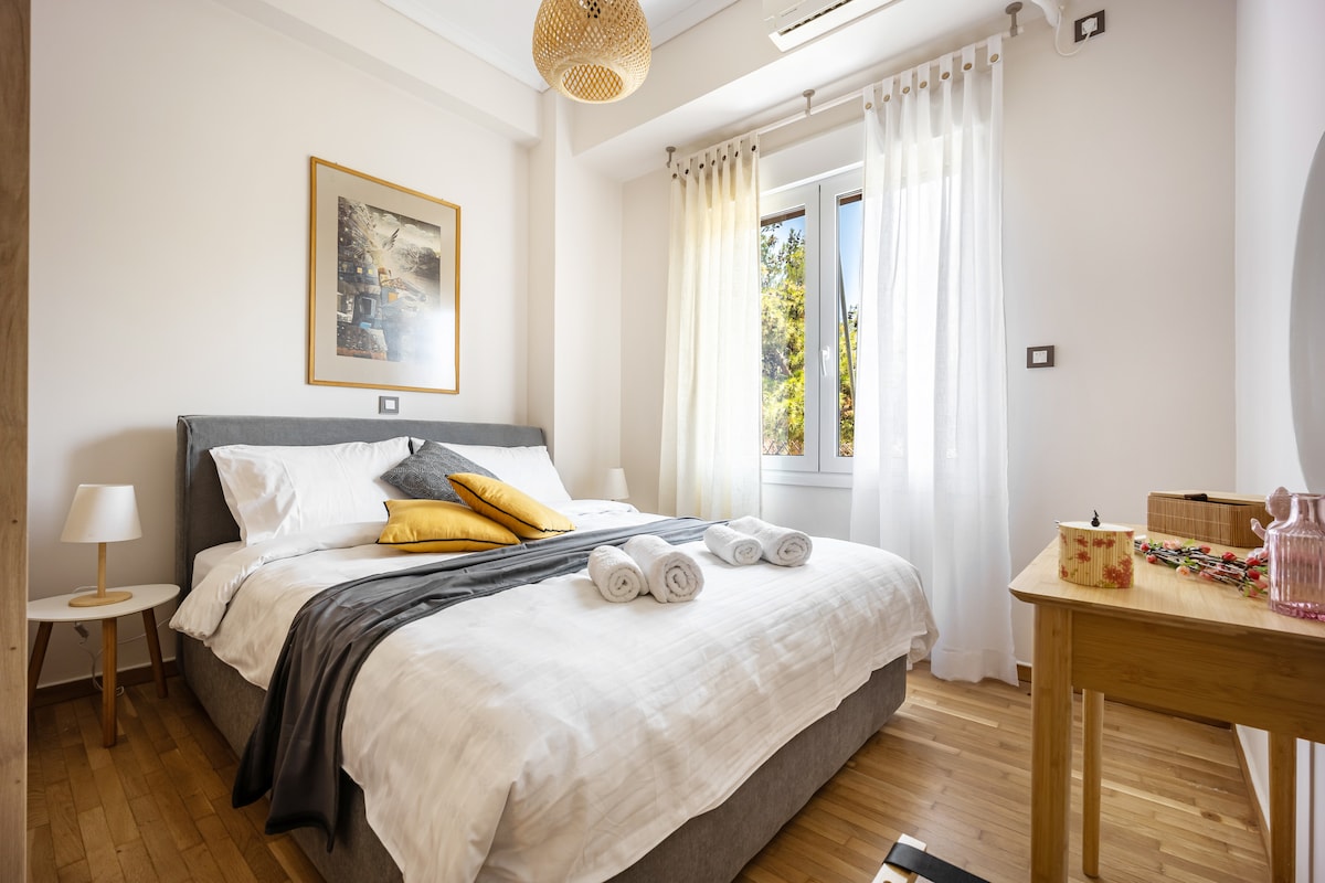Ciesz się pełnym komfortem i najlepszymi atrakcjami Aten w tym nowoczesnym apartamencie. Położony w jednej z najpopularniejszych dzielnic miasta, jest idealny dla par, podróżnych lub osób podróżujących służbowo. W pełni wyposażony apartament oferuje przepiękną część dzienną z przytulnym kącikiem jadalnym, sypialnię z podwójnym łóżkiem, w pełni wyposażoną kuchnię i nowoczesną łazienkę.