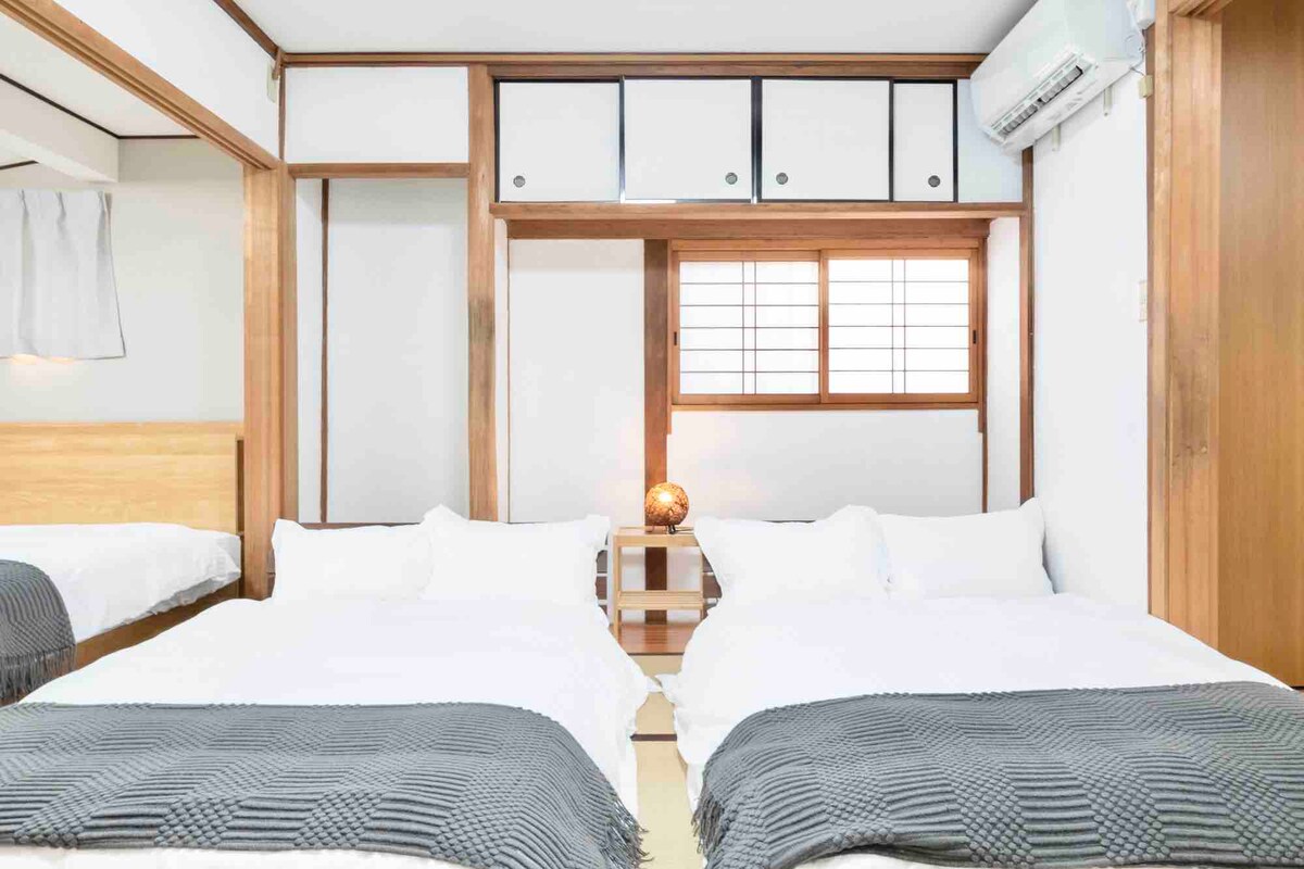 Witaj w Osace! Ten dwupiętrowy dom (60 metrów kwadratowych) znajduje się w moim rodzinnym mieście, które jest bardzo bezpieczne i wygodne. Najbliższa stacja metra to Higashimikuni, która znajduje się na jednej z głównych linii metra w Osace, więc łatwo jest dotrzeć do wielu popularnych i słynnych miejsc! Od stacji do domu jest 3 - 4 minuty spacerem. W pobliżu znajdują się sklepy spożywcze, sklepy z artykułami codziennego użytku i lokalne restauracje! Zameldowanie – 16:00 Wymeldowanie – 11:00 Możemy przechować bagaż przed zameldowaniem! Ciesz się japońskim domem!