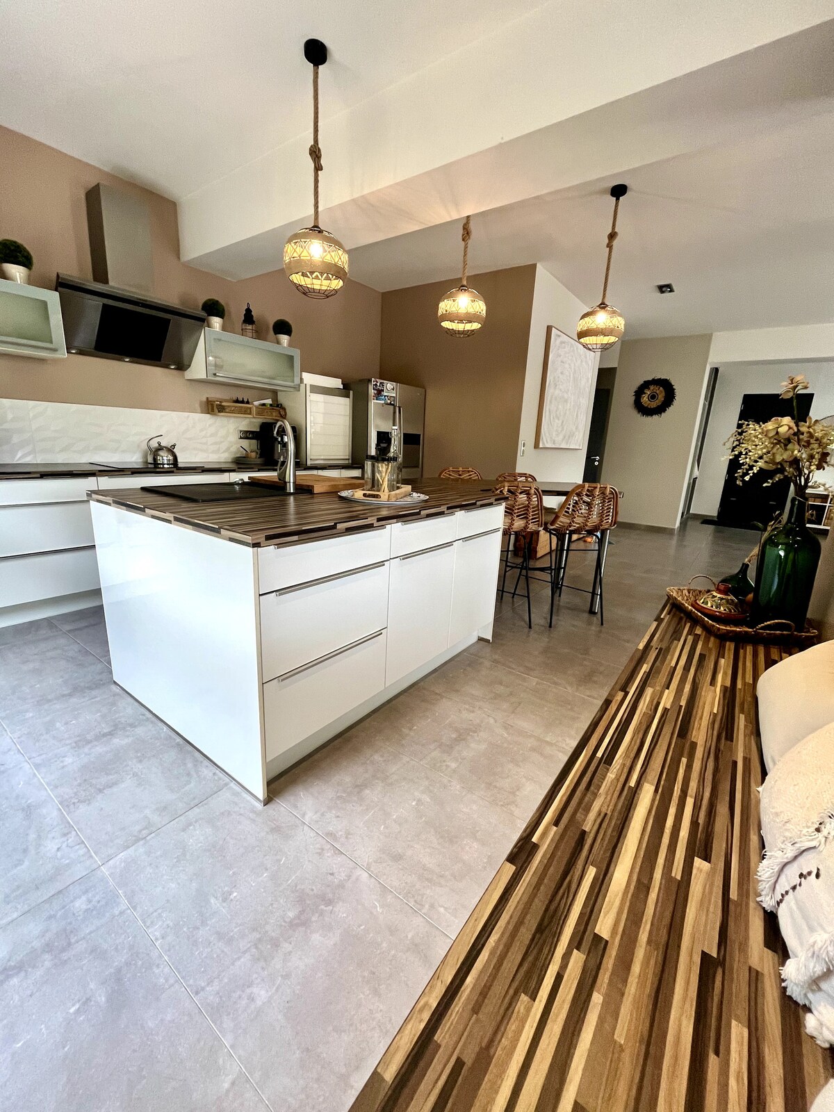 Wejdź do wspaniałego świata czarodziejów w tym wciągającym gite Rozkoszuj się przytulnym salonem podczas wieczoru w domowym zaciszu. W kąciku bibliotecznym, w którym można napić się pysznego drinka lub zrobić najpiękniejszą grę w szachy, jaką kiedykolwiek widziałeś. 2 pokoje czarodziejów, nadal musisz znaleźć wejście. → 1 łóżko typu queen i 2 łóżka 90 cm z pościelą → Kuchnia: płyty grzewcze, lodówka, kuchenka mikrofalowa, toster, kawa, zmywarka → Prysznic, ręczniki na miejscu