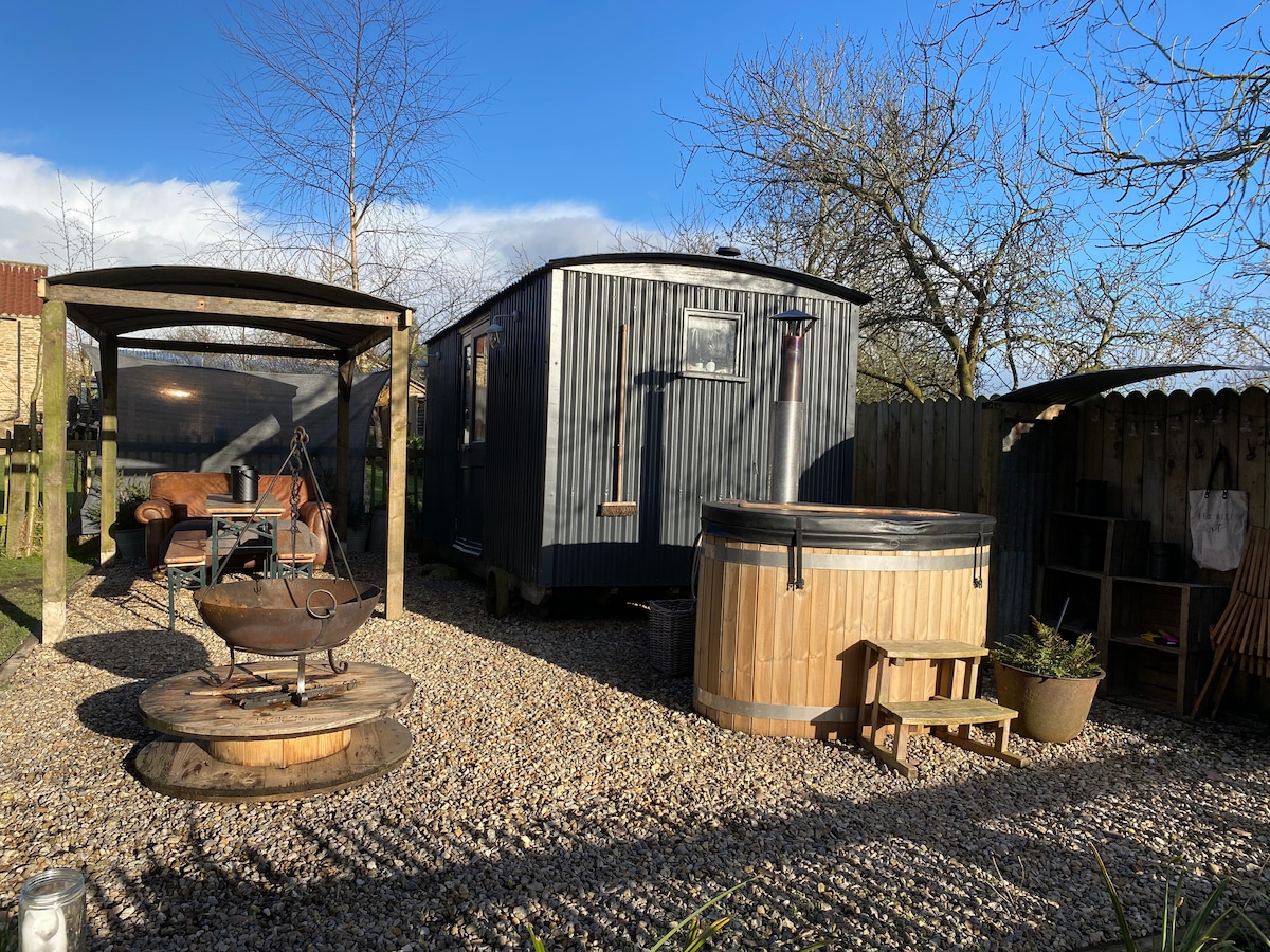 Przyjedź i zatrzymaj się w naszej pięknie wykończonej, blaszanej chacie pasterskiej na końcu naszego ogrodu. Znajdujemy się na terenie wiejskim z rozległymi widokami na dolinę York. Po dniu spędzonym na zwiedzaniu tego obszaru AONB nie ma nic lepszego niż gotowanie herbaty nad paleniskiem lub piec do pizzy na pellet drzewny, a następnie zanurzenie się pod gwiazdami w naszej rustykalnej wannie z hydromasażem. Zapadnij się w świeżo pościelone łóżko i obudź się przy dźwięku porannego chóru. Nasza łazienka w stodołce zapewnia wszystko, czego potrzebujesz do porannego odświeżenia! Do zobaczenia wkrótce.