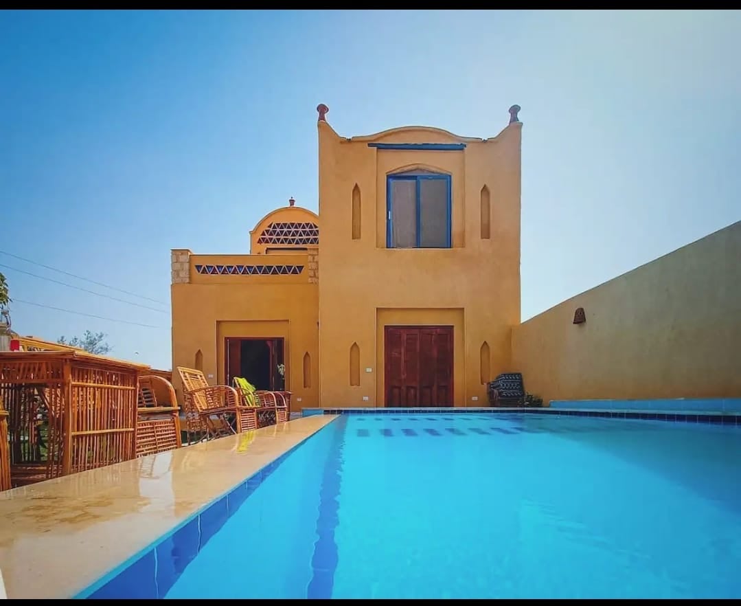 Wyjątkowo zaprojektowane prywatne zakwaterowanie w wiosce Tunis z widokiem na malownicze jezioro Qarun. Przestrzeń mieszkalna obejmuje pierwsze piętro wspaniałej willi z pięknym ogrodem i odkrytym basenem, z 2 dużymi sypialniami, kuchnią, salonem/jadalnią, górnym tarasem i pełną łazienką.
