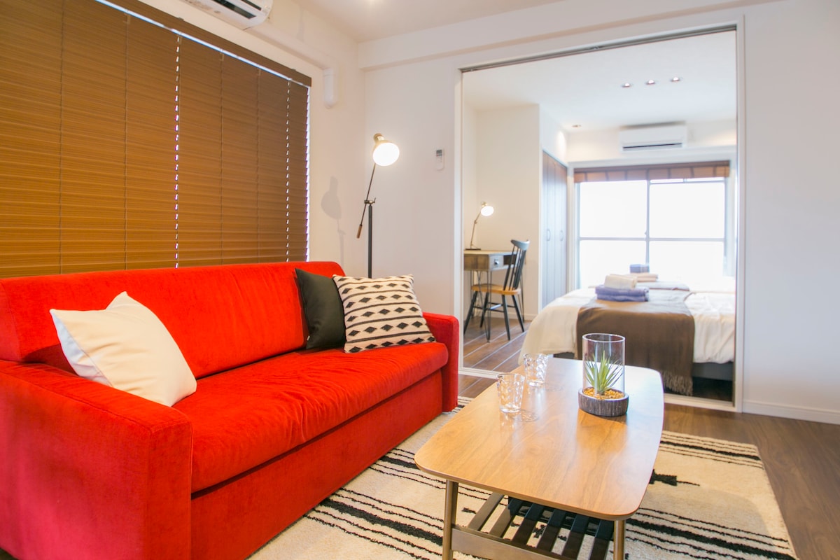 Nakameguro St 1min /[32㎡] 1 łóżko typu king size/ sofa