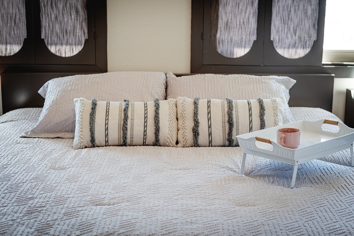 Stylowe studio na pobyt w samym centrum. Studio znajduje się mniej niż 5 minut od szpitala, sklepów, fast foodów, stacji benzynowych i Starbucksa. Jest to w pełni przebudowany garaż, odnowiony budynek ma własne patio i bramę wejściową, 1 fioletowy materac king, 1 łazienkę, sypialnię, w pełni zaopatrzoną kuchnię, telewizję z telewizją na żywo i Roku Dostęp dla gości Wejście do apartamentu z boku rezydencji, parking na podjeździe, wejście bez klucza, samodzielne zameldowanie.