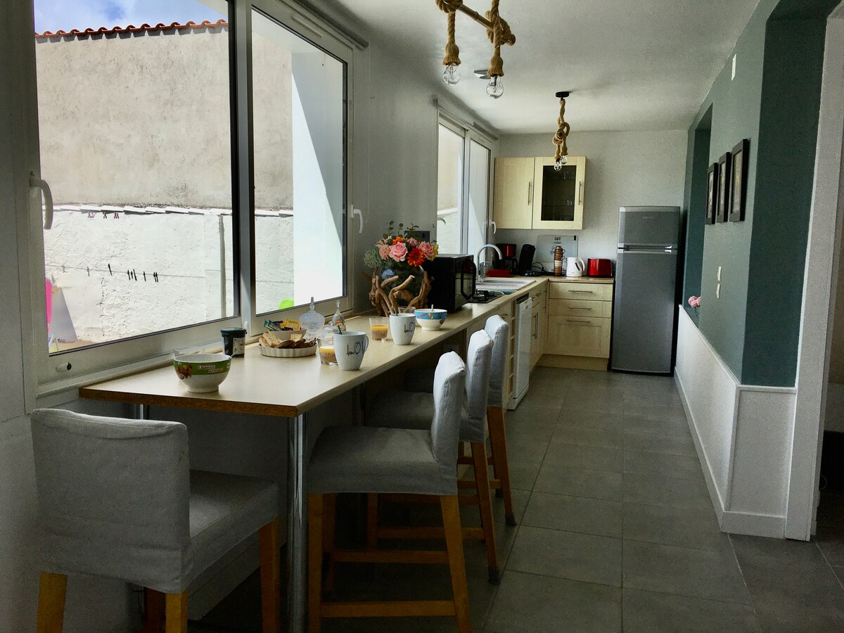 Les Boucholeurs, mała wioska hodowców ostryg, w pobliżu plaży Chatelaillon, 15 km od La Rochelle. Przyjemny i jasny dom o powierzchni 55 m2 dla 4 osób, w którym znajdują się: - w pełni wyposażoną otwartą kuchnię - pokój dzienny/salon z kanapą i telewizorem - pokój rodziców (łóżko 160, garderoba, lustro) - łazienka/WC z prysznicem, pralka - mały pokój: 2 łóżka piętrowe 90 cm, łóżeczko składane dla niemowląt - taras i zamknięty ogród: stół, leżaki, grill, parking