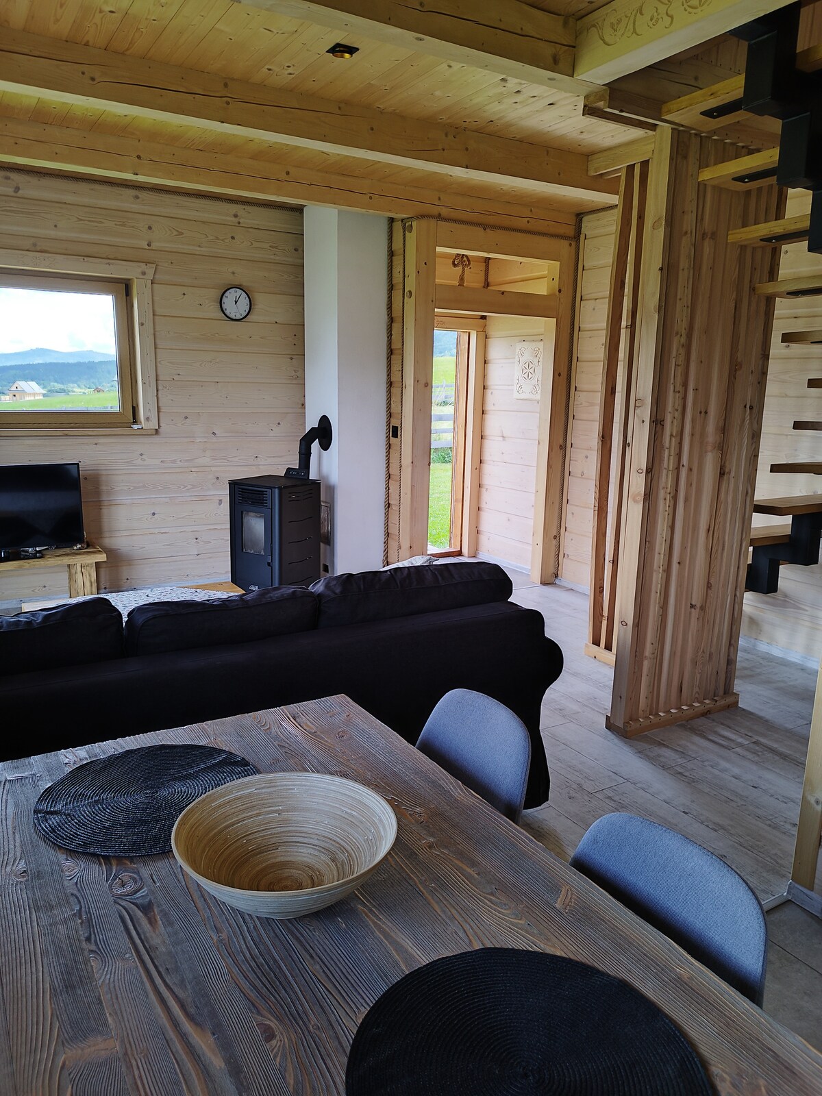 Wzgórza pełne jeleni, które nierzadko możesz obserwować wprost ze swojej sypialni lub tarasu. Bardzo nowoczesne, wypełnione przepięknymi i starannie wyselekcjonowanymi meblami z drewna egzotycznego, wyposażone w wysokiej jakości sprzęt oraz bardzo komfortowe łóżka - wnętrze. Na balkonie obok mebli i leżaków z ekskluzywnego drewna tekowego - sauna fińska. Zewnętrzny taras prowadzi Was wprost do balii ogrodowej z podgrzewaną wodą. Leżąc w łóżku lub wannie, możecie zachwycać się widokiem na góry.
