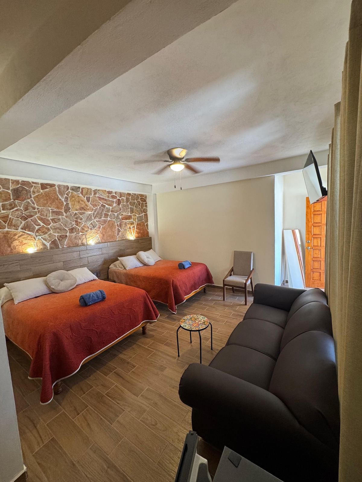 Casa amplia, ideal para relajarse y disfrutar en familia, con espacios cómodos tanto en el interior como en el exterior. Cuenta con área abierta para estacionar autos al frente y en la parte trasera de la casa. Está ubicada en la hermosa Sierra Huasteca Hidalguense. Dispone de dos recámaras, cada una con dos camas matrimoniales, además de una cama matrimonial en la sala. La casa cuenta con todas las amenidades necesarias para una estancia cómoda y placentera.