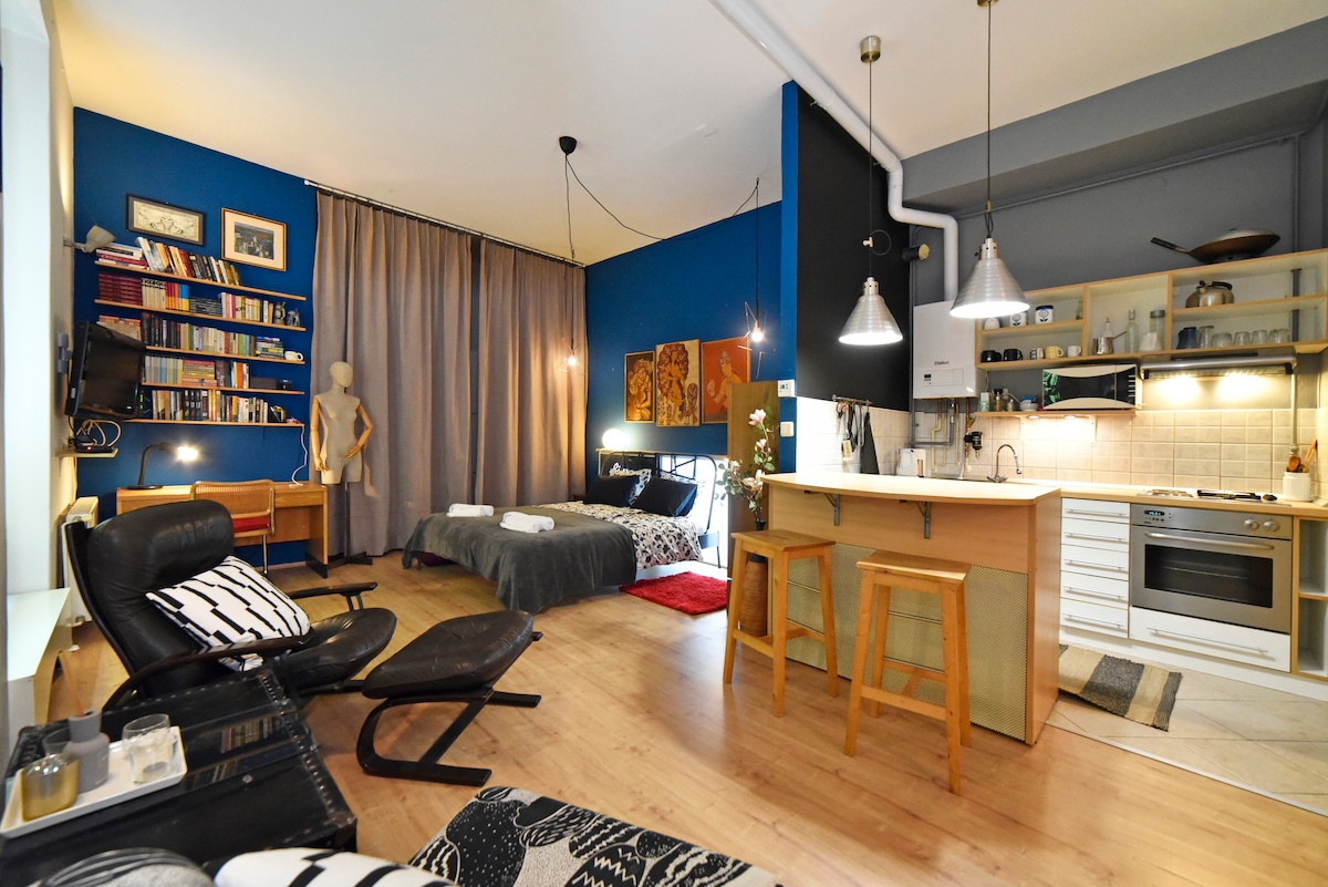 A private urban studio apartment in the core of city center. The apartment is furnished with a fully equipped kitchen, bathroom, tv, washing machine, and fast wifi.The grocery store is located in the main building which is in the pedestrian zone, but accessible to taxi cars. Everything else you might need is located within a 1 minute walk.