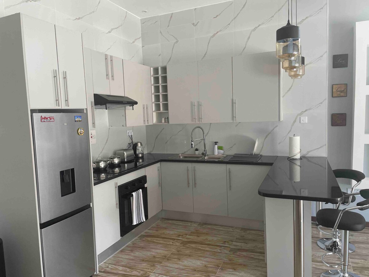 Odpręż się i zrelaksuj w tej spokojnej, stylowej przestrzeni. Nasz apartament typu executive z jedną sypialnią ma luksusowe łóżko, pościel, przestronne miejsce do pracy i dwa telewizory z płaskim ekranem oraz otwartą salon. Przygotuj coś wyjątkowego w w pełni wyposażonej kuchni z nowoczesnymi urządzeniami. Zrelaksuj się i ciesz się czasem spędzonym z ukochaną osobą w otwartej przestrzeni mieszkalnej. Blisko centrów handlowych ( Waterfalls and Garden city) i lotniska. To miejsce, które trzeba zobaczyć!