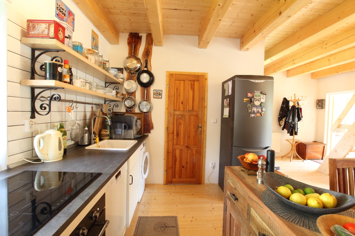 Dom położony jest w dużym ogrodzie pełnym kamiennych i metalowych posągów oraz innych artefaktów, obok głównego domu. W pobliżu centrum Pragi. 2 minuty do przystanku autobusowego. Blisko stacji metra. 20 minut do centrum Pragi. Dom posiada w pełni wyposażoną kuchnię i łazienkę. Sypialnia znajduje się na górnym poziomie domu. Ogród z w pełni wyposażoną kuchnią letnią i grillem. Bezpłatne Wi-Fi i parking w ogrodzie. Możliwość podwiezienia z lotniska/dworca kolejowego – skontaktuj się z nami.