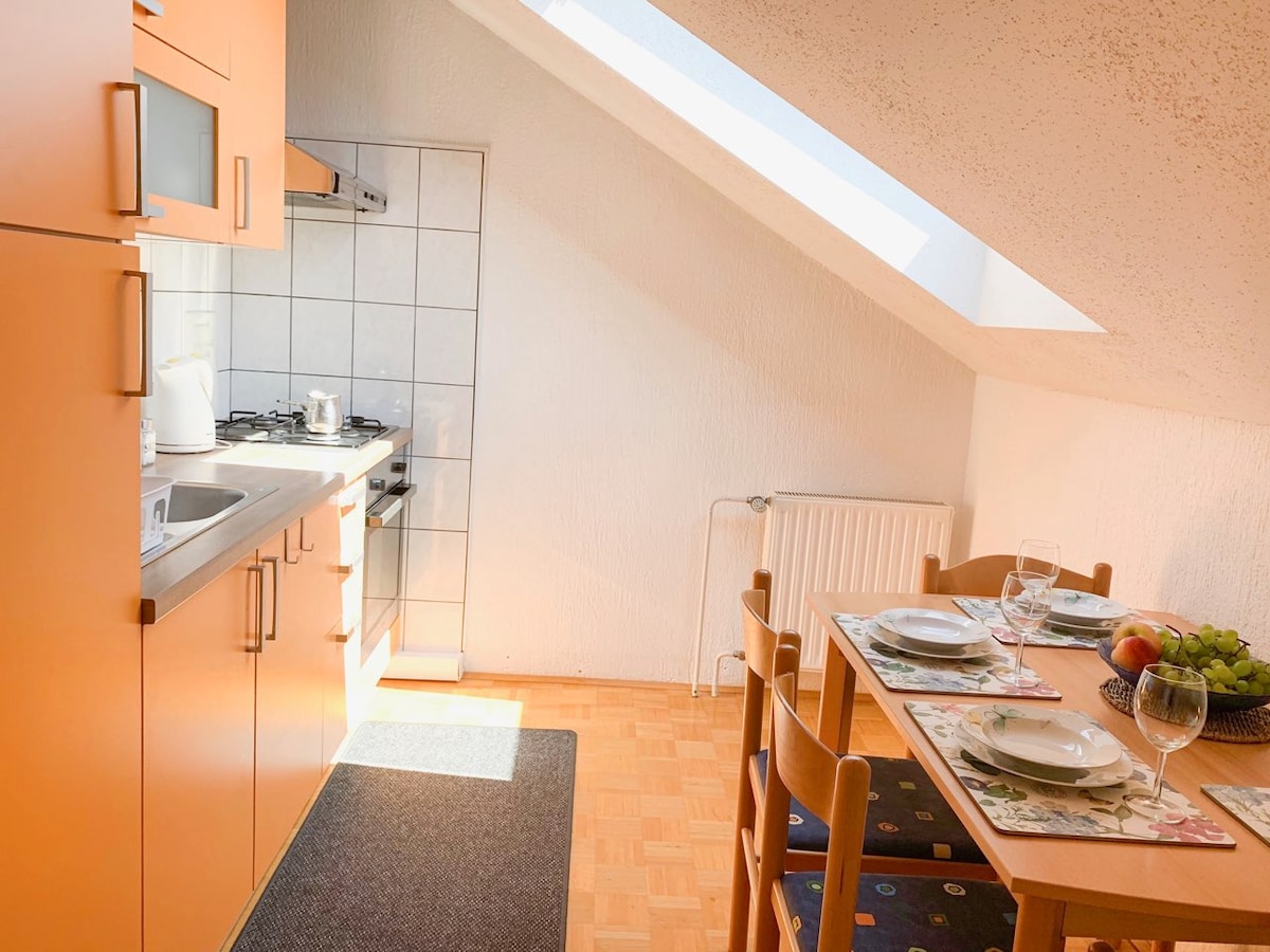 35 sqm shabby-chic, half-basement, garden access. There is a separate bedroom with queen bed and a separate bathroom. Living and dining area with a comfortable sofa bed that sleeps a 3rd person. The tea kitchen facilities include mini fridge, microwave, toaster and water heater. No stove. Coffee and tea provided. Outdoor sitting area is in front of the apartment and you can use it as much as you like. Free private parking on the premises. Grocery shop is just a few steps away open from 7am-9p