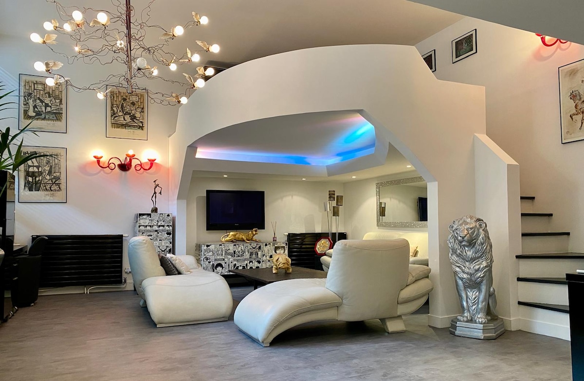 Witamy w naszym pięknym domu w stylu loftu o powierzchni 180 m², położonym w Perreux-sur-Marne, w pobliżu PARYŻA, DISNEYLANDU i brzegów Marny. Idealne dla rodzin, nasze zakwaterowanie może pomieścić do 6 osób. Z niecierpliwością czekamy na Ciebie w naszym lofcie, aby uczynić Twój pobyt niezapomnianym. Skontaktuj się z nami, jeśli masz pytania lub chcesz zarezerwować pobyt.