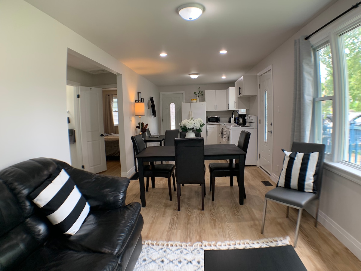 Położony w pięknej i cichej dzielnicy, ten nowoczesny apartament może być idealnym spokojnym miejscem na wypoczynek bez względu na okazję. W pobliżu jeziora Simcoe, piękne plaże do pływania i wędkowania oraz mnóstwo szlaków przyrodniczych. Najważniejsze informacje: Duża i przytulna sypialnia z dużą przestrzenią do przechowywania i pracy. Piękna otwarta jadalnia i kuchnia ze wszystkim, czego potrzebujesz. Kawa Keurig, herbata i przekąski. Wygodna sofa przed telewizorem z dużym ekranem i Netflixem. Szybki internet.