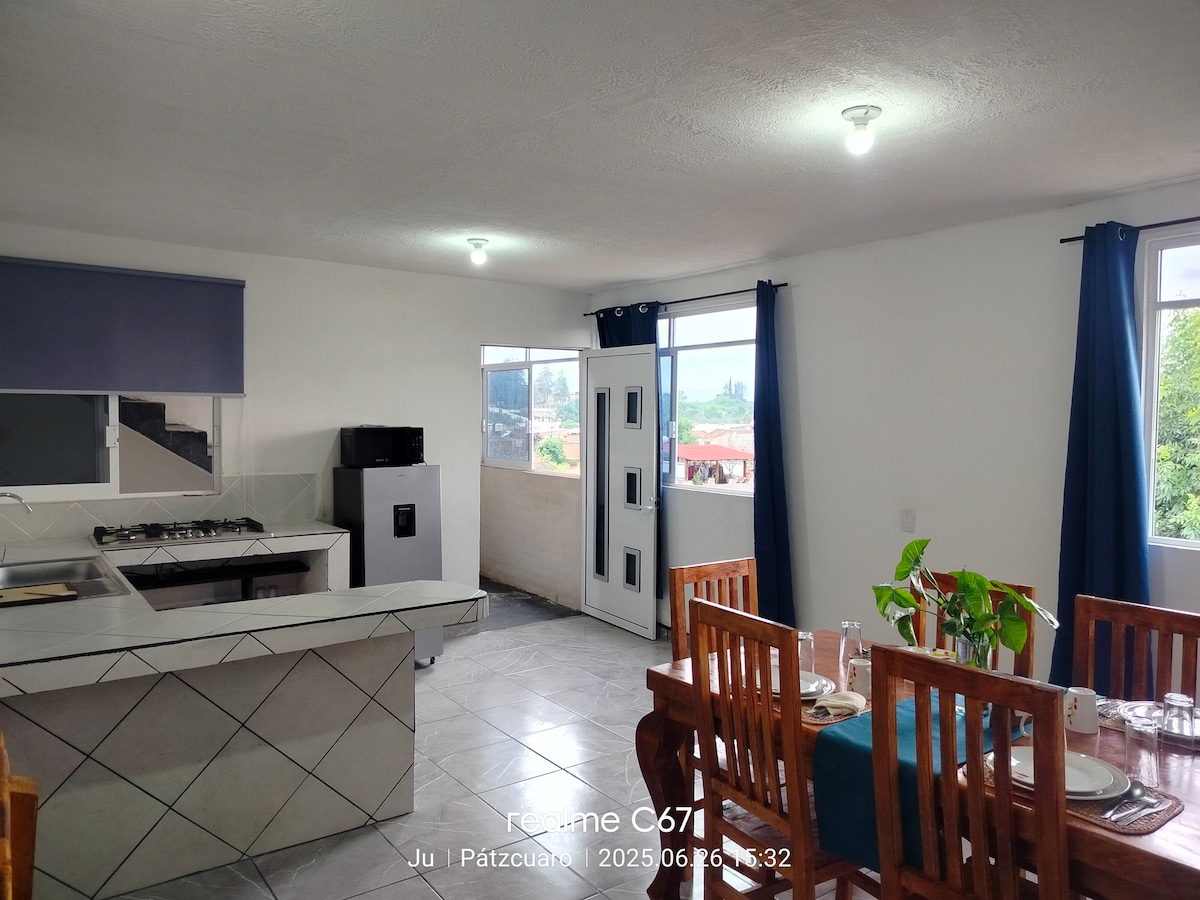 La casa está diseñada para hacer eventos familiares como comidas o reuniones ya que cuenta con una barra con bancos y espacio para recreación. Ninguno de esos servicios se cobra extra, ya están incluidos en el precio por noche. Además de que pueden pernoctar y descansar gratamente en un ambiente de pueblo pequeño el cual está lindo para recorrer.Ubicado cerca del camino a Uruapan, Zirahuen y a unos minutos Patzcuaro. Nota: Para ir al baño hay que atravesar el patio.