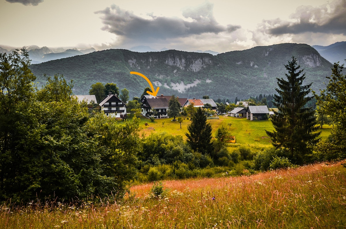 Our house lies on a hill surrounded by the mountains in a small peaceful village, just 3 km away from Lake Bohinj. This place is one of the world's pearls, perfect for travellers who love nature and the peace of mountains. We arranged the upper floor of our house into a cozy home for travellers. Our idea was to make this apartment something special so we invited artists and craftsmen to participate. We also connected with the locals and can help our guests get the most out of their journey.