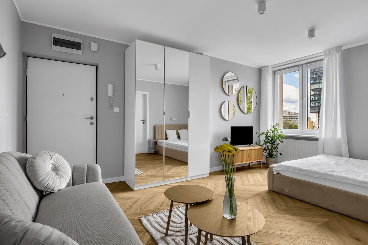 Klimatyzowany dwupokojowy apartament, w którym się zatrzymasz, mieści się w samym sercu Warszawy. Jest idealnie położony - blisko dworca Warszawa Centralna, z łatwym dojazdem na lotnisko. W kilka minut dojdziesz do przystanku autobusowego, tramwajowego i stacja metra. Centralne położenie gwarantuje łatwy dojazd do atrakcji turystycznych miasta. Dwupokojowy apartament jest świeżo wyremontowany i komfortowo wyposażony we wszystko, czego możesz potrzebować podczas swojego pobytu. Internet 500Mbps.