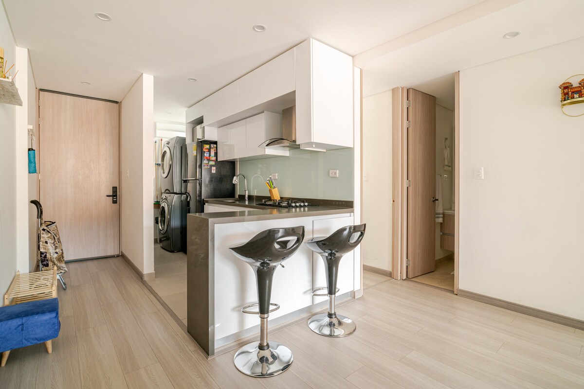 Ubicado en la zona más practica y conveniente de Bogotá, en pleno Chapinero. A solo unas cuadras del centro financiero, de la zona gastronómica y cultural y a pocos minutos del centro de la ciudad, disfrute de una experiencia elegante en un nuevo apartamento con todo lo necesario para tu comodidad, sea estadía de trabajo (Internet alta velocidad) o turismo y goza de excelentes vistas. Edificio con seguridad y magníficos amenities como salas de reuniones, gimnasio, piscina, sauna y parrilla.