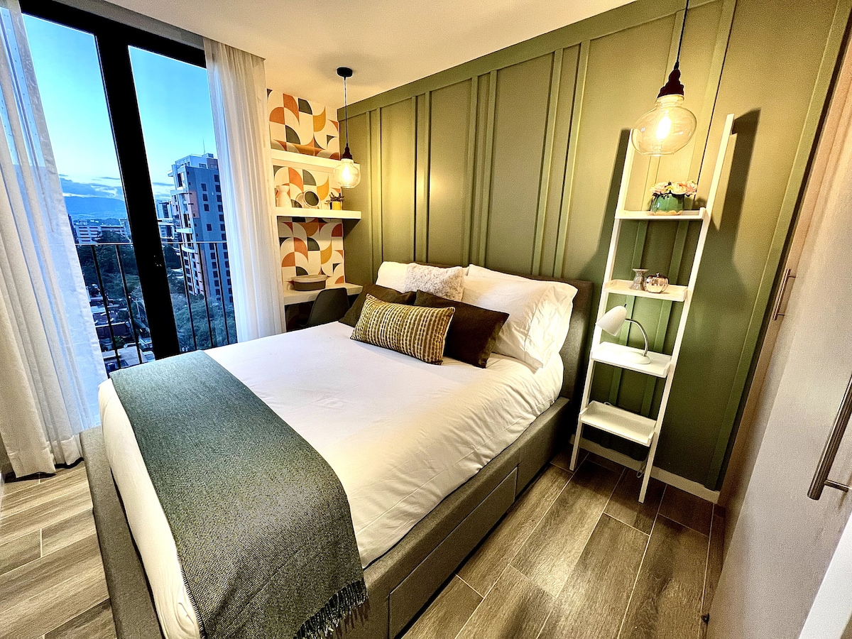 Enjoy a beautifully located apartment in Guatemala City. H Group Residences presents its new “Safari” apartment in a brand-new building facing the majestic volcanoes (Agua, Fuego, Pacaya) and only 10 minutes from the airport. Every detail has been carefully designed to create a warm and enjoyable stay. Browse the photos and imagine yourself unwinding in this charming and inspiring space.