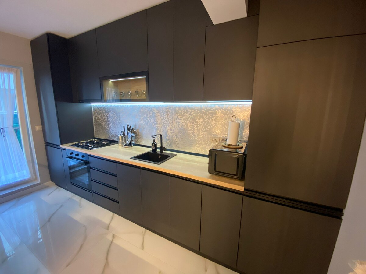 Każdy dom jest inny i wszystko, czego można chcieć, jest tutaj. Ten wyjątkowy apartament premium to doskonała okazja. 2 sypialnie z łóżkami 160 x 200, 1 salon z rozkładaną kanapą, która może pomieścić do 6 osób, 2 łazienki z wanną. Siłownia, centrum handlowe, dzielnica biznesowa, restauracje, metro podziemne, w pełni wyposażona kuchnia, kawiarnia i herbata, pralka i suszarka, suszarka do włosów, żelazko parowe, 2 duże telewizory, 3 klimatyzatory, kocioł gazowy. Darmowe Wi-Fi, darmowy parking, nowy blok. Idealna lokalizacja.