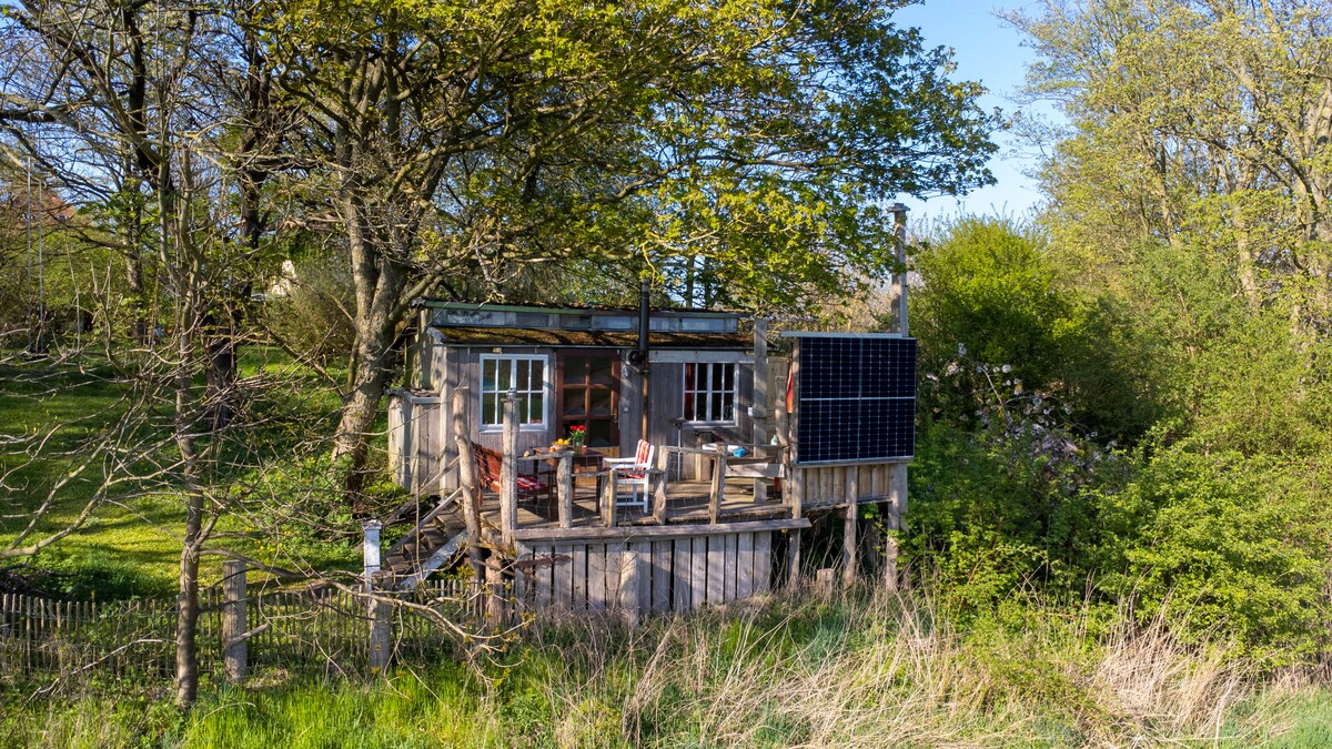 Mały domek w parku przyrody Sternberger Seenland, Mecklenburg-Western Pomerania w bardzo cichej, ustronnej okolicy między łąkami a lasem. Prosto umeblowany domek wykonany z drewna i gliny stoi obok dawnego domu wiejskiego, dziś domu właściciela.